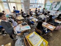 講話の後は、各教室に戻り、自分の持ち物を意欲的に片付けました。