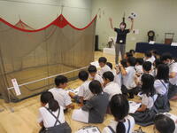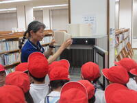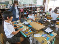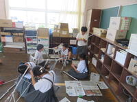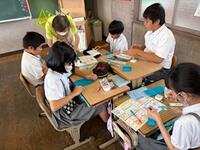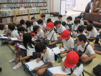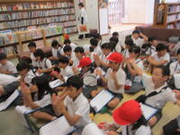 昼休みの図書館では、早速、図書委員がイベントを開催し、それを楽しむ子供たちがいました。