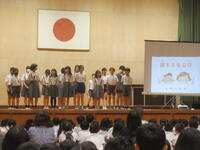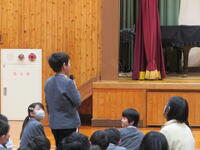 おひさま集会では、校長先生のお話、読書月間について図書委員会より、あいさつ運動について生活委員会より、発表をしました。
