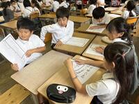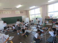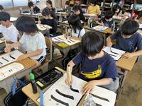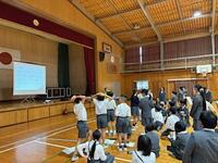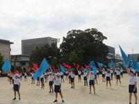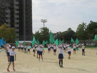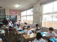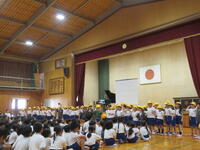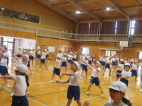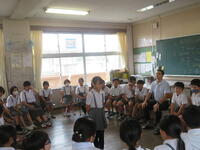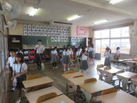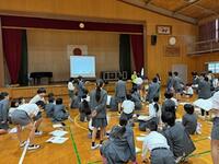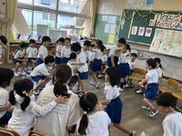 5,6年生の応援団が各学級に行き、下学年の子どもたちと応援の練習をしました。