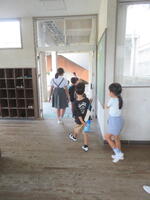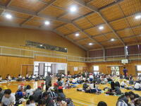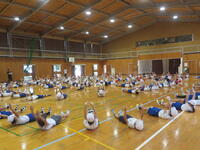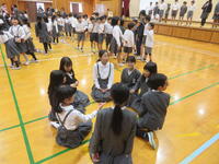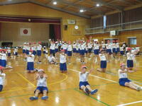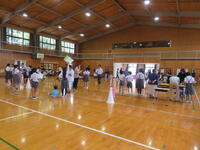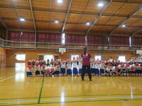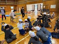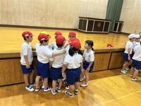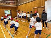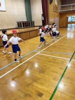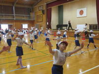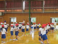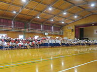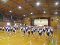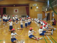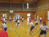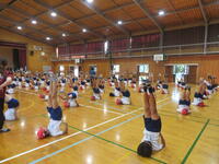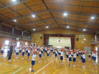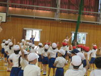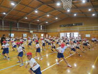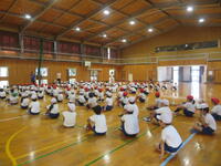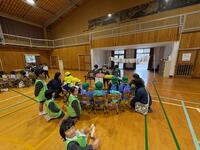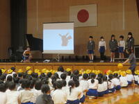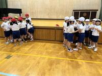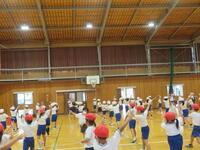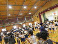体育館で、クイズやじゃんけん列車など全校児童で楽しみました。