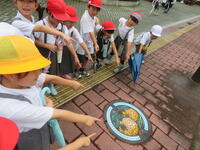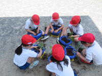 本校一年生と、代陽幼稚園、聖愛幼稚園、つるまる保育園、しらさぎ保育園の年長児さんとわくわく秋祭りを行いました。