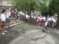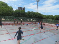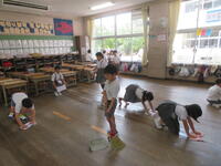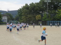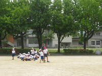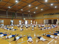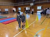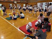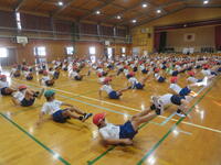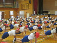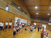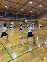 上体起こしや反復横跳びなど、6年生が下学年にやり方を教えたり、
