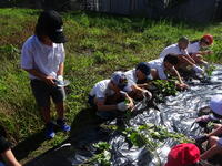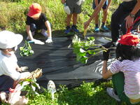 ミニトマトやナス、枝豆などの野菜の苗植えをしました。