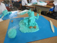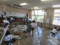 斑で話し合い、協力しあいながら、立体的な作品を作りました。