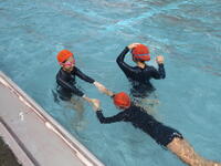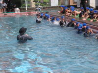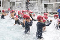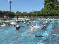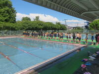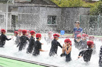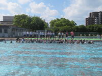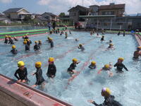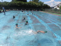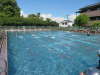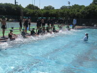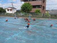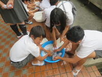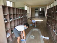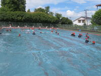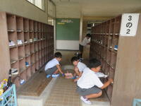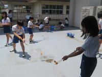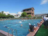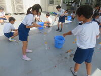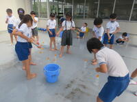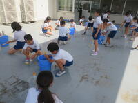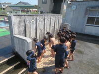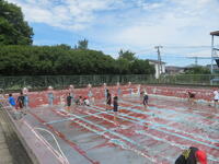 暑い中、5・6年生がプール掃除を一生懸命頑張りました。