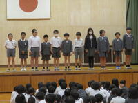 始業式後に2学期から新しく転入した児童3名を紹介しました。