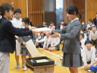 最後に、人権擁護委員さんからおみやげをいただき、お礼を伝えて終了しました。教室に戻り、各自自分の思いを用紙に書きました。