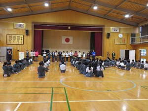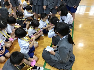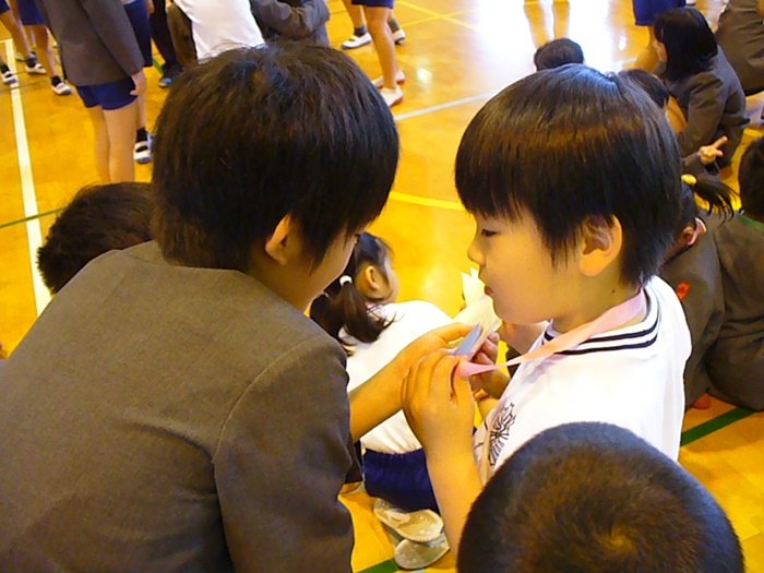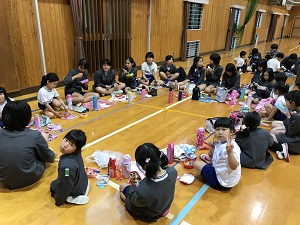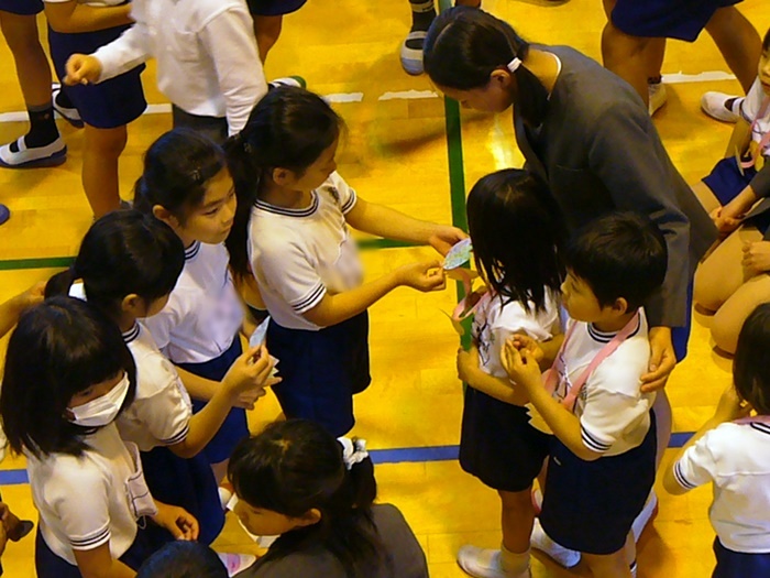 迎える会は、体育館で行われ、一年生へのプレゼントやみんなでゲームをしました。