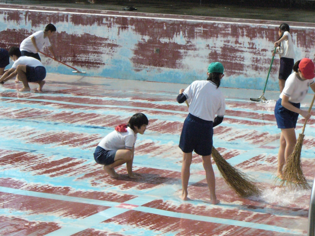 先週、5年生と6年生がプール掃除をしてくれました。