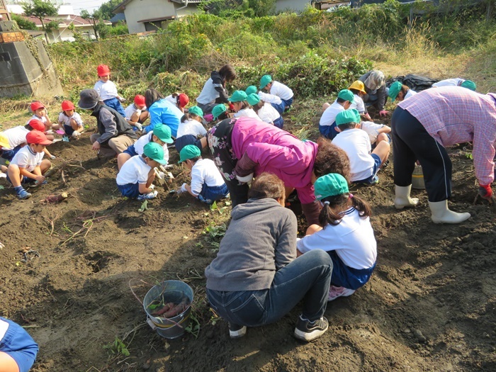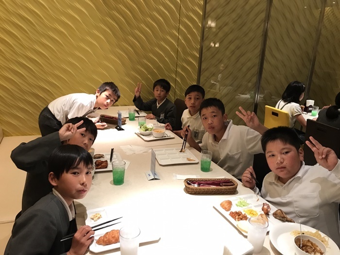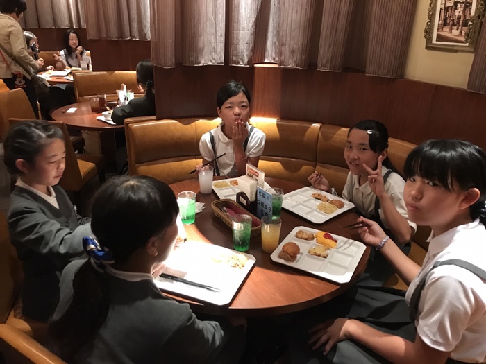 現地でも一年生のお世話は六年生がしました。一緒にお弁当を食べたり、遊んだりしました。