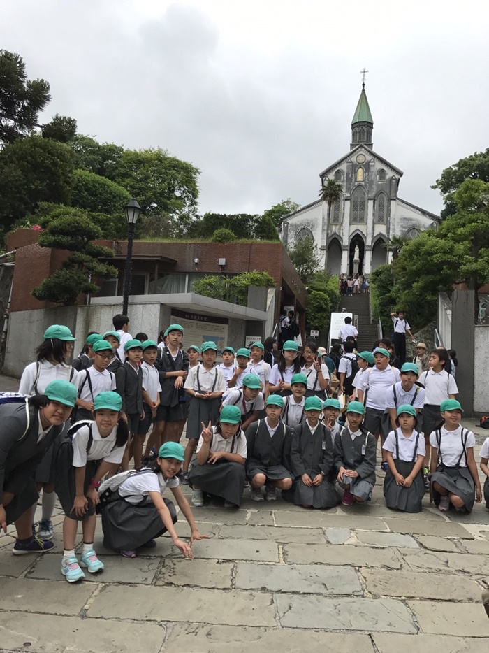 大浦天主堂の前で。