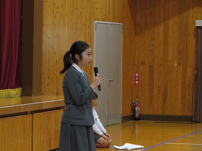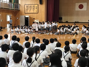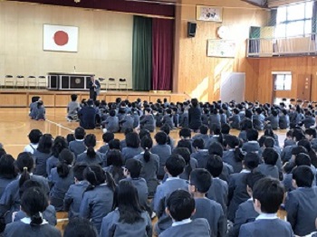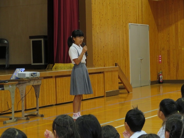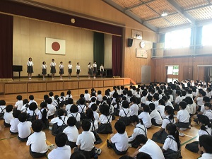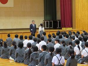 あいさつは、「大きな声・さわやかな笑顔・立ち止まって目を見てあいさつ」ができるようになろうとお話がありました。