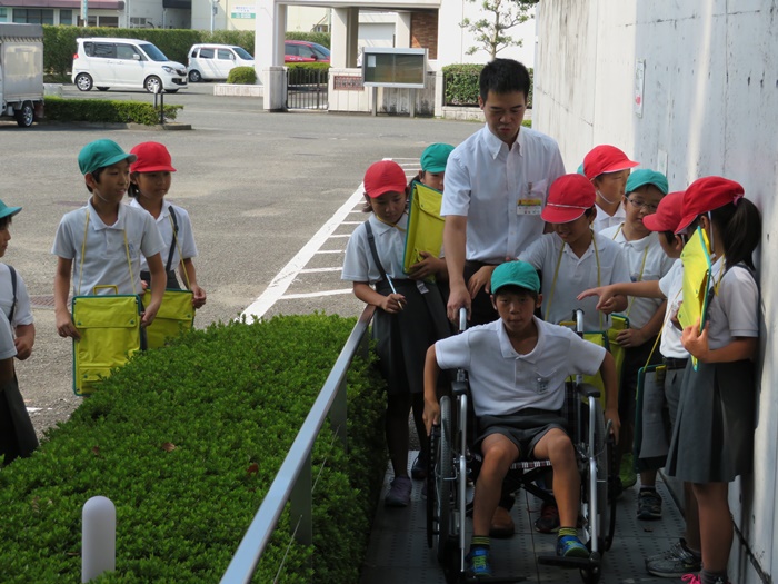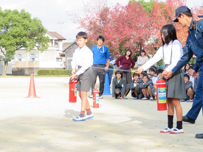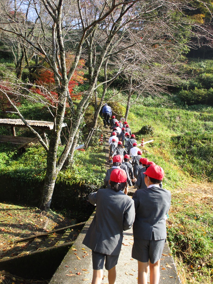 子供たちも先生方と一緒に学校を出ます。