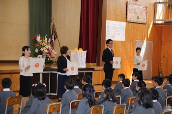 本校代表で市の童話発表会に参加した1年生が、低学年特別賞を受賞したので、