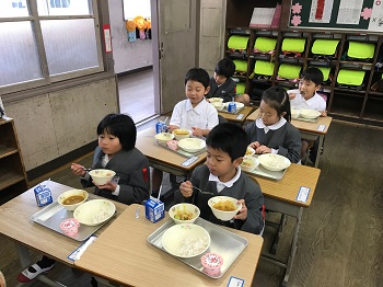 さあ、そんな一年生も、入学から3週間たち、給食の準備もできるようになりました。