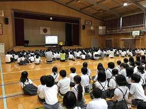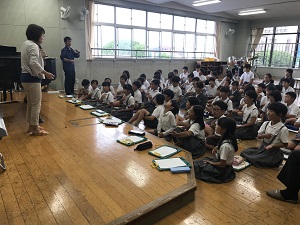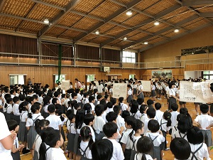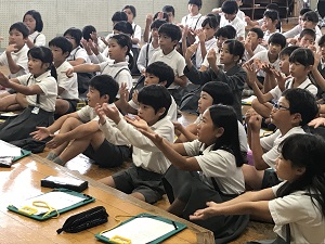 実際に手話を使われて、生活されている方の講話を聞き、手話の大切さについて学んだ子ども達。