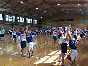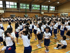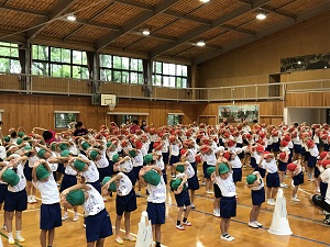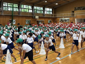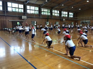 本校では毎日、PTAの方々のご協力で、ラジオ体操が行われています。