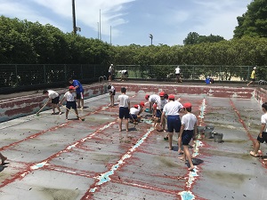 5年生と6年生のプール掃除