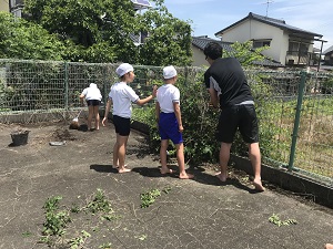 運動場の除草作業を頑張り、ずいぶん運動場がすっきりしました。