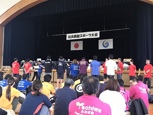 今日は2回目の全体練習でしたが、あいにくの雨のため、体育館で開閉開式の練習をしました。