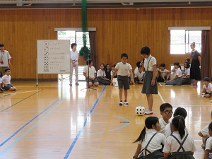 今月のおひさま集会は、体育委員会からの発表でした。