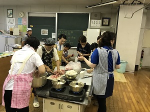 また、PTA方々が朝から朝食作りのご協力をいただき、作業後においしくいただきました。