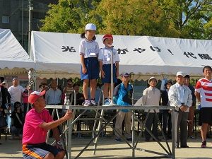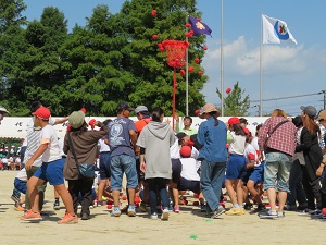 親の力を見せつけた 6年生親子玉入れ