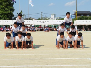 力強い動きと 周りと合わせる巧みさを見せた 5,6年組体操
