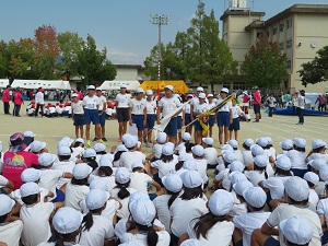 今日の全体練習は、行進、開会式、閉会式の練習をしました。