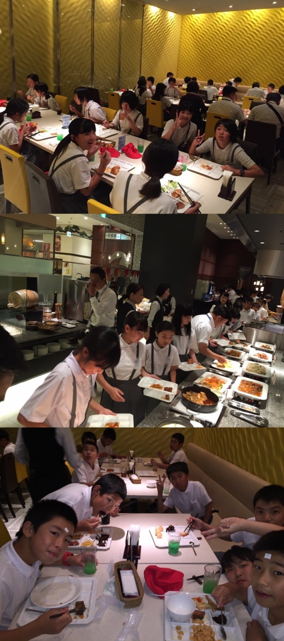 一日目も終わろうとしています。一日歩いて勉強し、疲れちゃったけど、ホテルでの夕食で元気回復。部屋に戻るとなかよしの友達との話もはずみます。