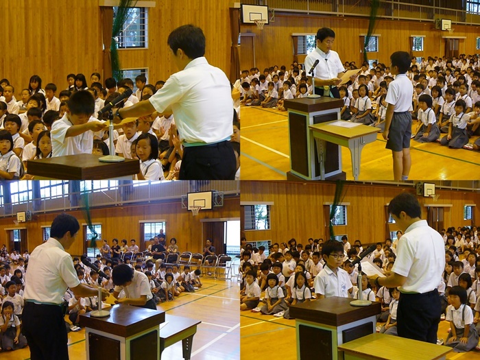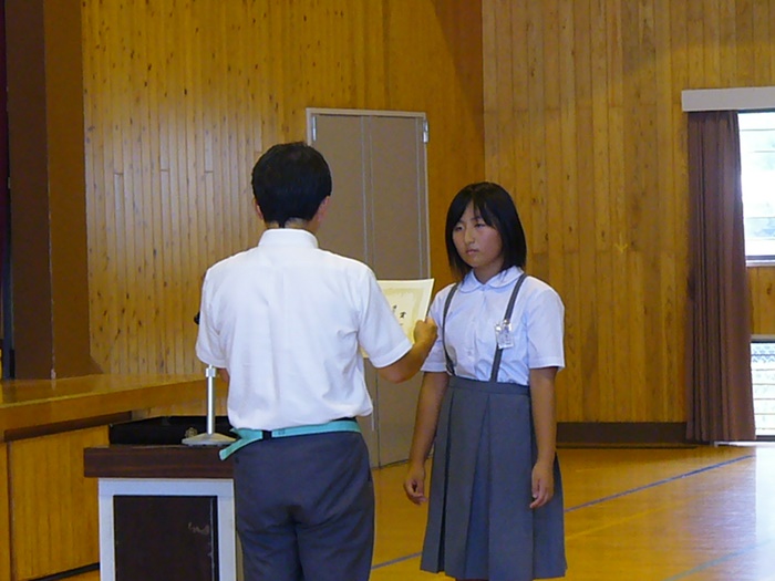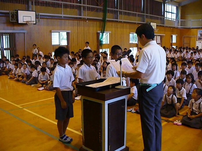 ↓2学期もたくさんの人が頑張ってくれました。表彰の様子です。