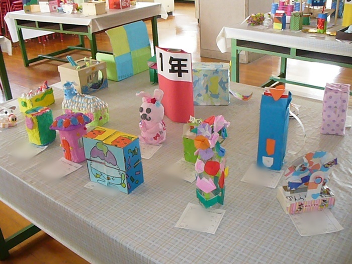 アイデアいっぱいの工作が勢ぞろいで、見学に来た子供たちも、ほかの学年の作品を見ながら「おー」とが「すごいねー」と感嘆の声を上げていました。