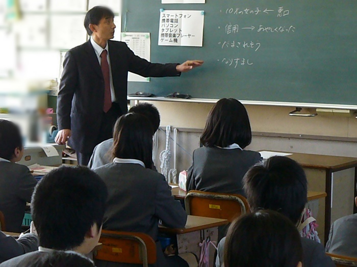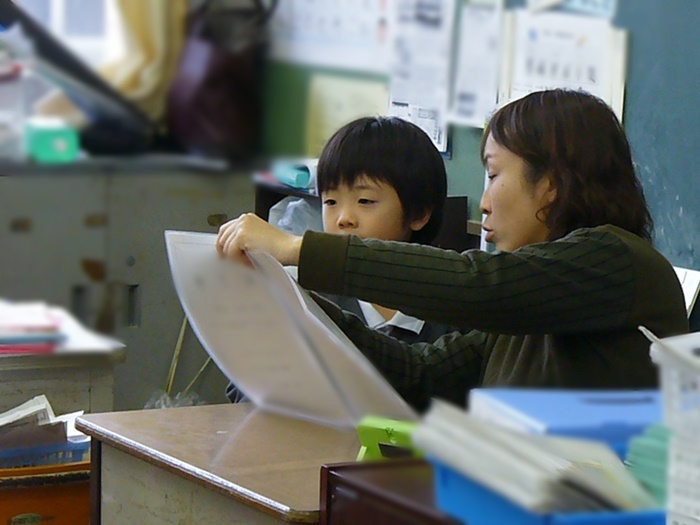↑ 学級懇談会では、保護者の方と担任の先生が率直な意見交換をしていました。保護者の方の協力があればこそ、より良い学級経営ができます。