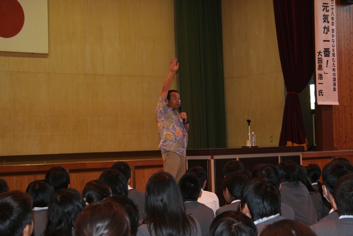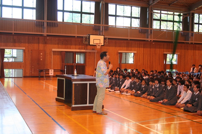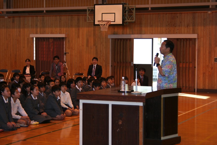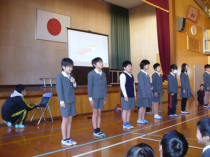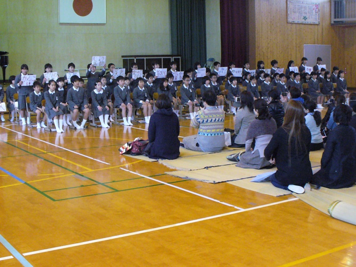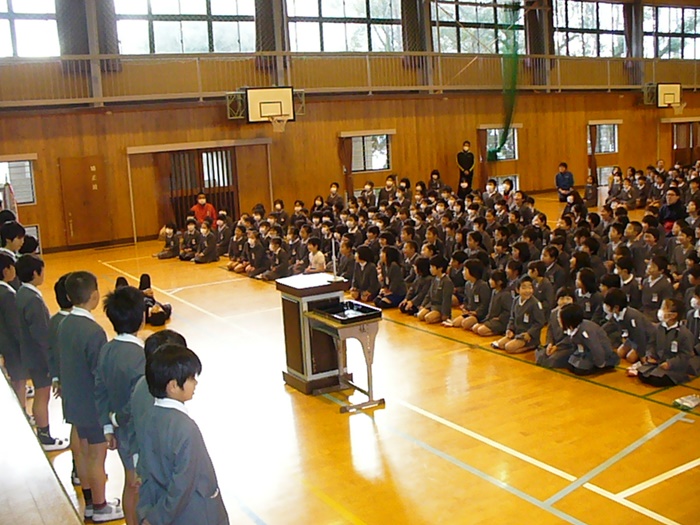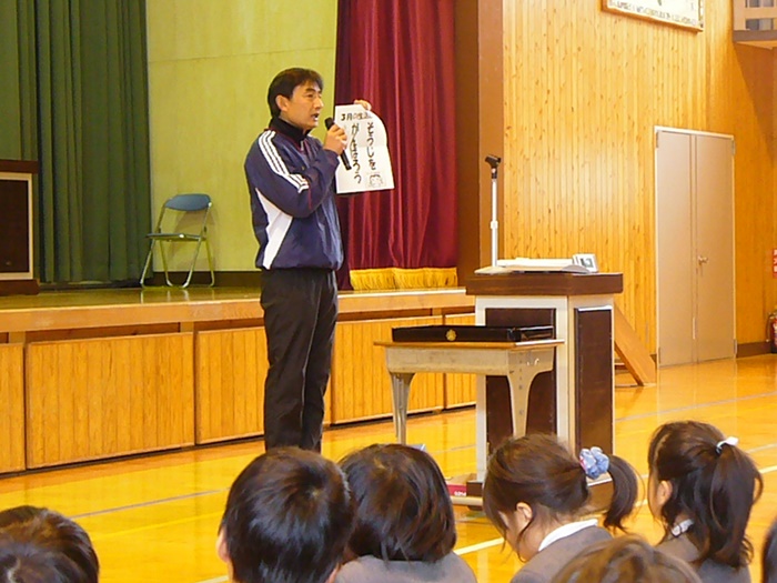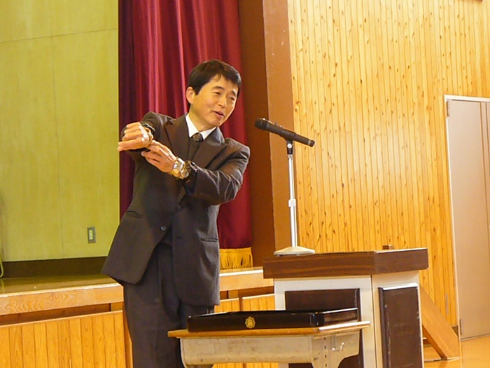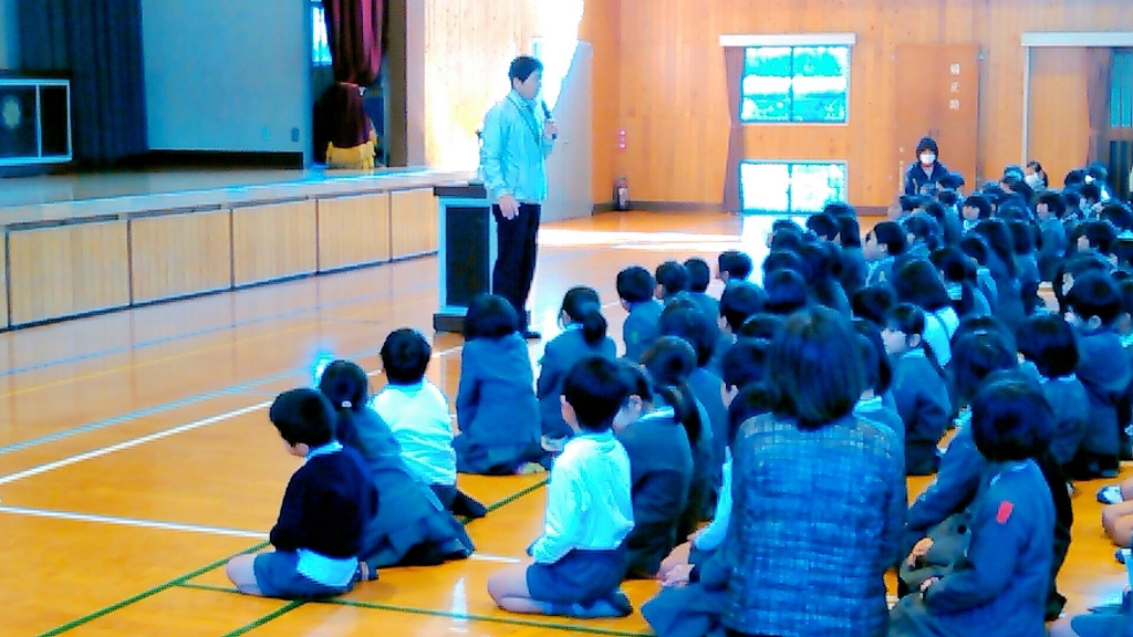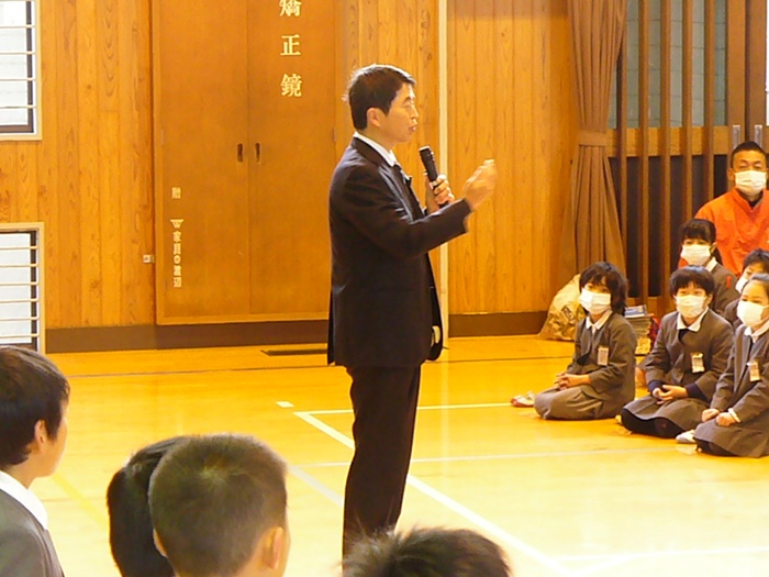 寒い体育館でしたが、みんな真剣に聞いていました。