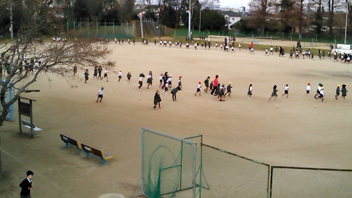 体の具合が悪い人は教室で休んでいますが、それ以外の人はほとんど外で走っているので、校舎の中ががらーんとしています。