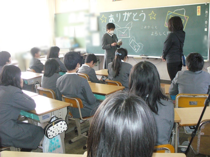 ↓授業参観の後はPTA総会が行われました。会長さんの本年度最後のご挨拶です。