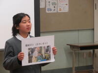 パネルを使いながら、給食室の先生方の仕事内容や毎日気をつけているいること、仕事の中でうれしいことなどを発表してくれました。おいしい給食が食べられることに感謝し、毎日しっかり食べてほしいと思います。
