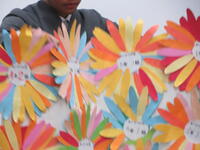 次に、たいよう委員会からは、2、3学期に全校で取り組んできたあいさつ運動について、お知らせがありました。みんなで取り組んだ「あいさつの花」の紹介でした。たくさんの花ができあがりました。