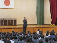 校長先生の話では、昨年外国より転入した6年生の人についてでした。代陽小に来たことは日本語はまったく話せず、日本語も書けない状況でしたが、7ヶ月が経ち、毎日ひらがなやカタカナ、漢字の練習をがんばり、今ではひらがな、カタカナ、漢字を使ってお手紙を書けるようになったという話でした。努力や意欲に勝るものはないです。