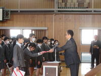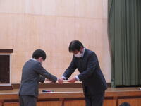 会の終了後、図書室にて終わりの会を行い、一人一人に校長先生から記録証を渡していただきました。来年、さらに伸ばしてほしいと思います。