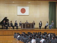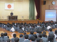 校長先生の話では、新年のご挨拶、能登半島地震について、3人のレンガ職人のお話がありました。