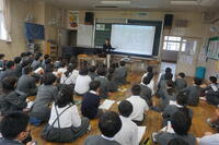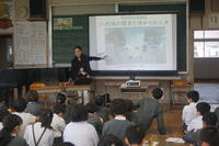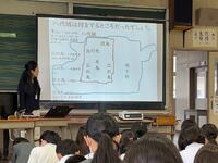 24日(水)の2校時に、「八代城の歴史について」博物館の学芸員山崎さんに来ていただき、出前授業を行いました。