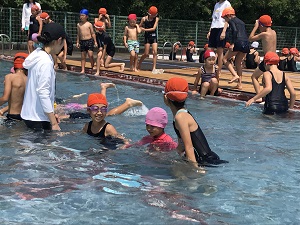 いつもの水泳の授業より、たくさんの先生方に見ていただけるので、どんどん新記録を出し、25m以上泳げる児童が増えてきました。