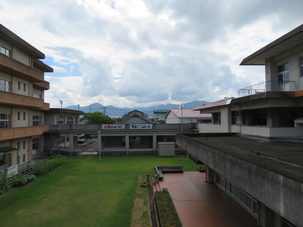 むしむし、とても過ごしにくい教室ですが、子どもたちは暑さに負けずに頑張って学習をしています。