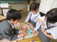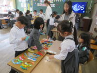 最後のお楽しみ会は、子供たちが計画から準備まで頑張りました。はじめの言葉や終わりの言葉なども考えました。お店屋さんや紅白カード陣取りなどみんなで楽しみました。