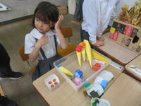 お店屋さんごっこをして、みんなで楽しみました。チョコバナナ屋さんや魚釣り屋さんなど子供たちがどんなお店にするか考え、商品をつくりました。値段も決めて、算数セットのお金でやりとりをしました。