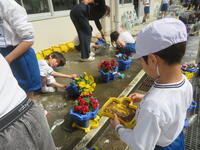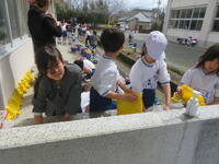 卒業式本番へ向けて、鉢の泥を落とすなどきれいにしました。
