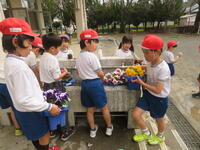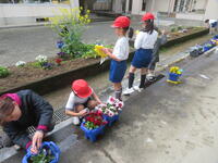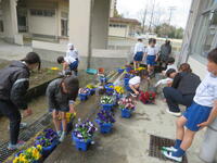 卒業式会場を飾るお花として、2年生がパンジーを育てています。