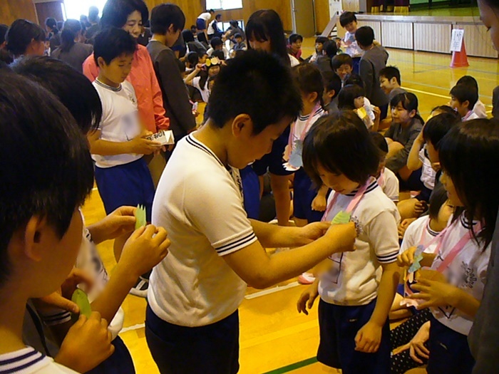 迎える会は、体育館で行われ、一年生へのプレゼントやみんなでゲームをしました。